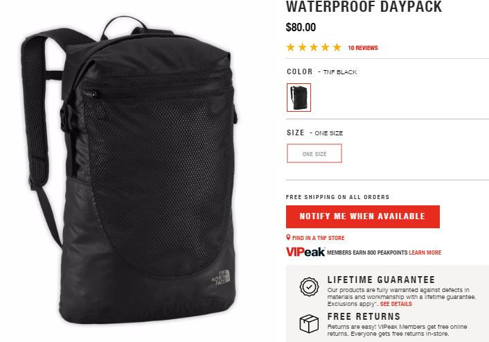 Example : A waterproof backpack from North Face. (Click Picture to View Site).